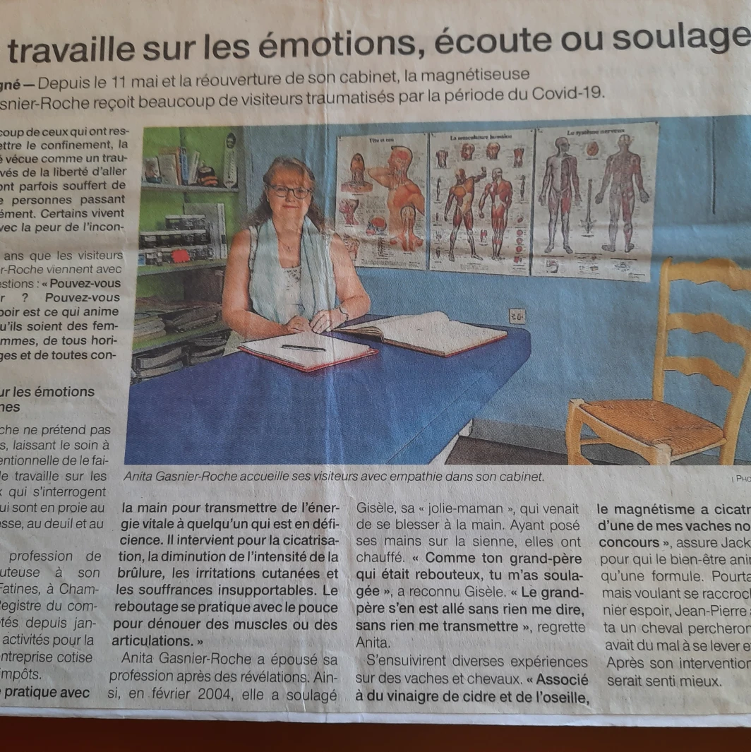 En 2004, j'étais assisse sur un banc avec la maman de mon époux. En discutant je posais mes mains sur les siennes. Au toucher mon corps ressentait une vague de chaleur intense m'envahir. Je compris que ma sensibilité réagissait aux douleurs. Ma jolie maman s'exclama "on dirait les mains de ton grand père". Effectivement de son vivant mon grand père était magnétiseur rebouteux et soulageait les divers maux des gens et des animaux. Jamais je ne sus quoi que ce soit, ses pratiques et ses connaissances partirent comme un secret avec lui .